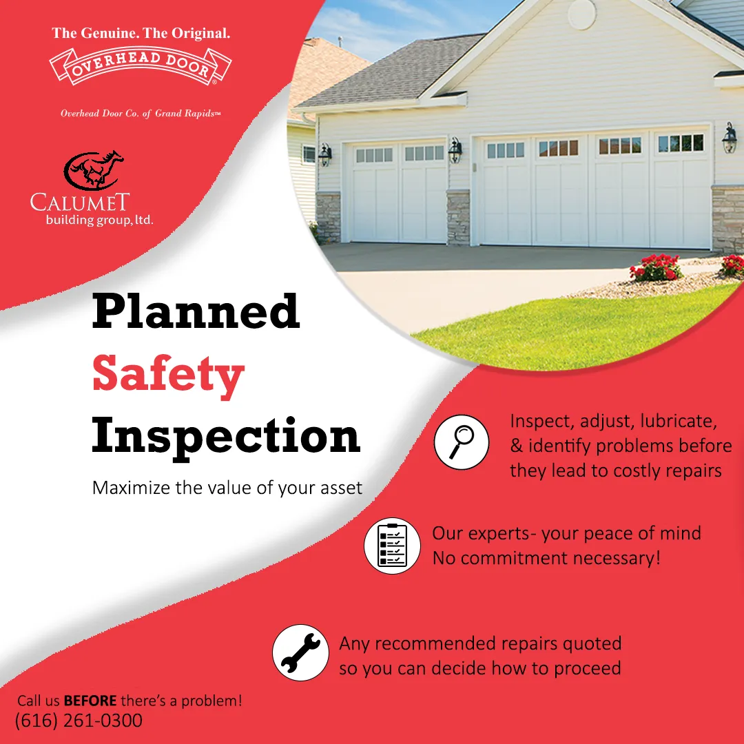 Our residential Planned Safety Inspections were designed to be proactive and save you money. For only $75 you can have a garage door expert inspect your door and catch potential problems before they turn into costly repairs. We recommend having your door inspected on a yearly basis.