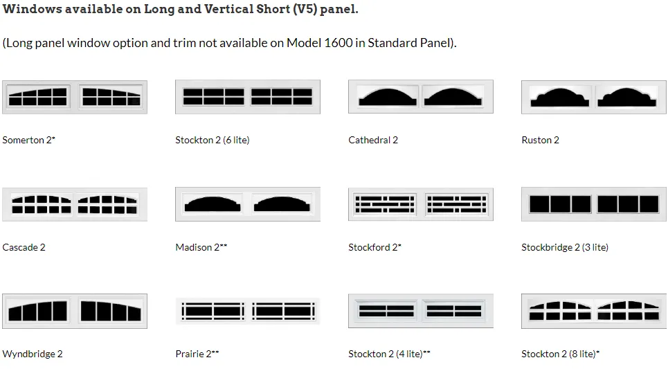 The Traditional Steel garage doors are available in five standard colors or can be painted to match your home’s décor. Color selections may not be available for some models. Door overlays and window trim are available in the colors shown.